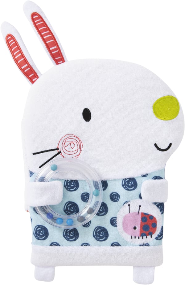Un libro de tela y un sonajero para que los bebés observen, toquen y jueguen. También pueden usarlo como peluche.